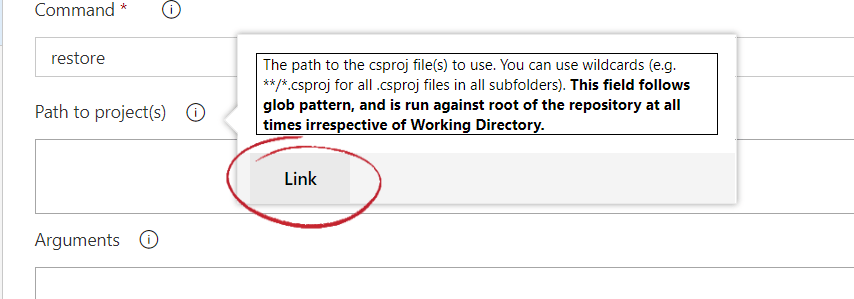 Cette tache va permettre de restaurer les packages Nuget utiliser par le projet exactement comme le fait Visual Studio lors de l’ouverture et la compilation du projet.