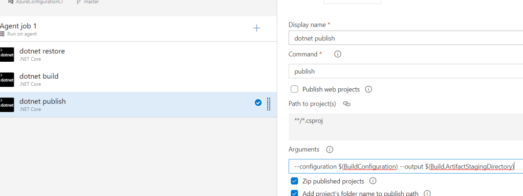Répétez l’opération avec la nouvelle task dotnet publish :