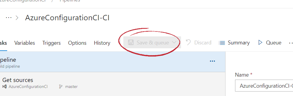 Cliquez sur Save & queue pour tester votre nouvelle pipeline d’intégration continue :