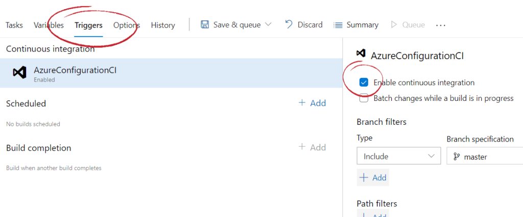 Il ne vous reste plus qu’a activer l’intégration continue en éditant votre pipeline et en cochant la case Enabled continuous integration :