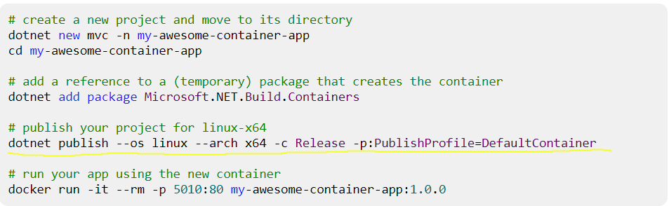 La création et le déploiement d’application « dockerisé » dans le cloud ne cesse de progresser. Pourquoi ? Parce que c’est simple. Pourtant, cela reste encore un soucis pour les équipes de développement qui pensent que cette partie-là relève plus du rôle de l’infra ou de l’architecte et non du développeur. De mon expérience, cela est dû au fait que l’on force l’équipe à sortir de ces habitudes et de ses outils et donc, de se zone de confort. Avec cette nouvelle version, vous allez pouvoir créer/versionner/publier des images de vos applications avec une seule ligne de commande :