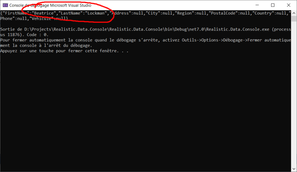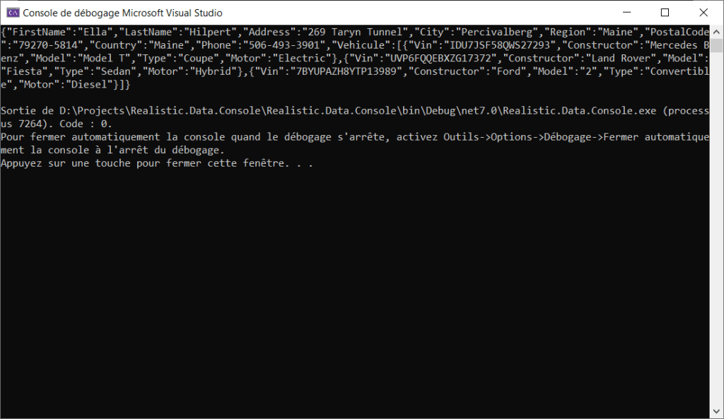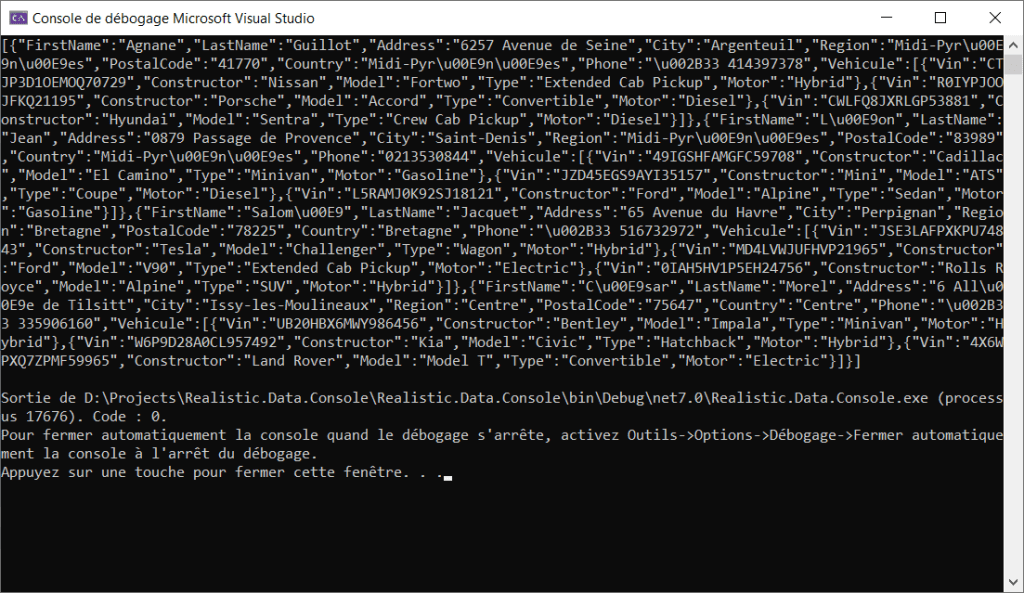 Dans cet article, vous allez apprendre à utiliser Bogus pour générer des données réalistes pour vos tests ou bien pour alimenter des données de développements ainsi :